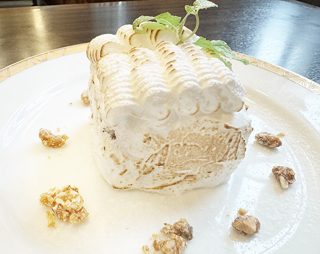 フレッシュイチジクのコンポート、カスタードクリームナッツのキャラメリゼ、イタリアンメレンゲで作る美味デザートです。