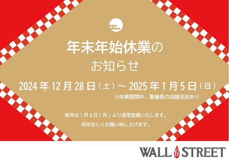 当店の年末年始のお休みは2025年 12月27日(土) から