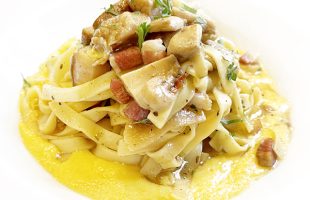 有機かぼちゃのクリームソースがイタリア産 ポルチーニと マッシュ…