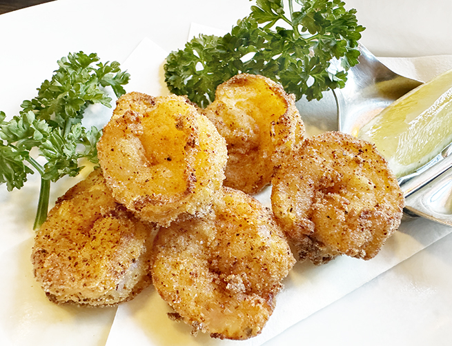 Home フードメニュー, 揚げ物 天然小海老のスパイシーフリット 天然小海老のスパイシーフリット フードメニュー、揚げ物 生ビール/ハイボールのおつまみにおすすめの小海老のスパイシーなフライです。お好みでオーガニックレモンまたはタルタルでお召し上がりください。(5ピース) 1,280円