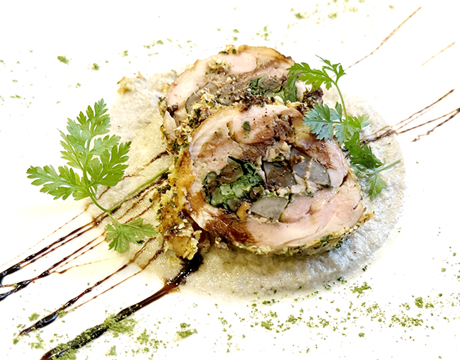 Home NEW! 季節のおすすめ, フードメニュー, 肉料理 美桜鶏とフォアグラ、冬野菜のインボルティーニ 美桜鶏とフォアグラ、冬野菜のインボルティーニ NEW! 季節のおすすめ、フードメニュー、肉料理 鶏のレバー、ハツ、冬野菜にフォアグラを加え、もも肉で包んだものに有機パン粉とハーブをまぶしました。ごぼうのソースでお召し上がりください。 1,280円