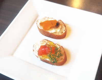 Home NEW! 季節のおすすめ, アンティパスト, フードメニュー シェフのプチ贅沢なカナッペ 2種盛り合わせ シェフのプチ贅沢なカナッペ 2種盛り合わせ NEW! 季節のおすすめ、アンティパスト、フードメニュー オーガニックトラウトキャビアとスモークした信州サーモン。地中海産カラスミと有機ドライイチジクと瀬戸内有機レモンのクリームチーズ。ちょっと贅沢な味の2種カナッペの盛り合わせです。自家製の焼きバケットにのせて。 880円
