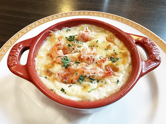 投稿日: 2026年2月12日2026年2月13日 投稿者: fukudaズワイガニ、海老芋とマッシュポテトのグラタン風 パルジャミーノのベシャメルソース 旬のズワイガニ、里芋に甘いマッシュドポテトにベシャメルソースを合わせたほくほくメニューです。 880円