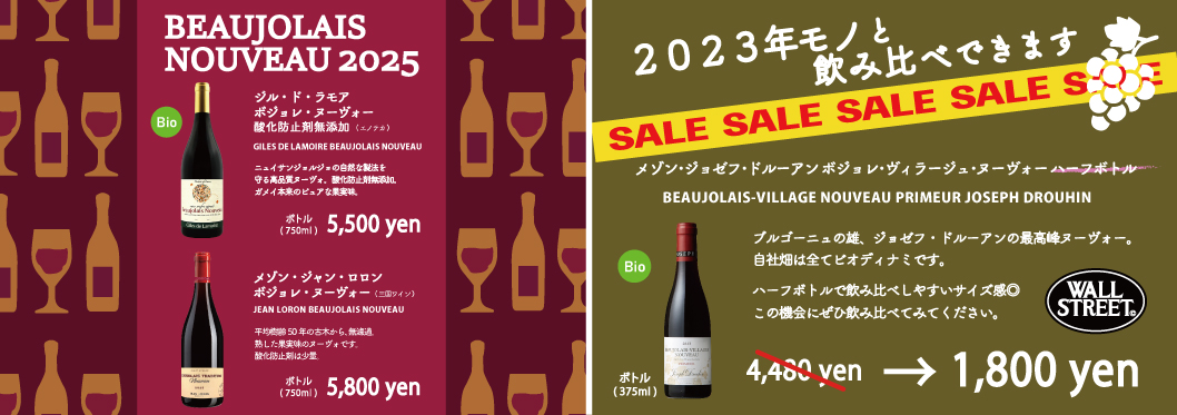 Home ワイン, 最新ニュース 2025年 ボジョレー・ヌーボー◇◇解禁◇◇ 2025年 ボジョレー・ヌーボー◇◇解禁◇◇ ワイン、最新ニュース 今年もこの時期がやってまいりましたーー!!当店では2種と控えめの品揃えですが 2023年モノと飲み比べもしていただけます。こちらに合うお料理と一緒に🍷ぜひご賞味くださいませ (グラスもご用意ございます!!) スタッフ一同、お待ちしております!! 2025.11.20