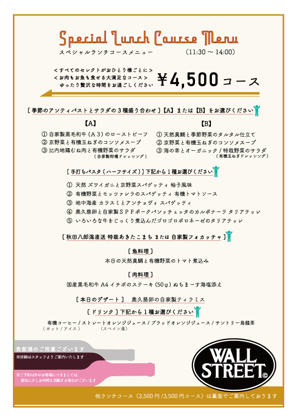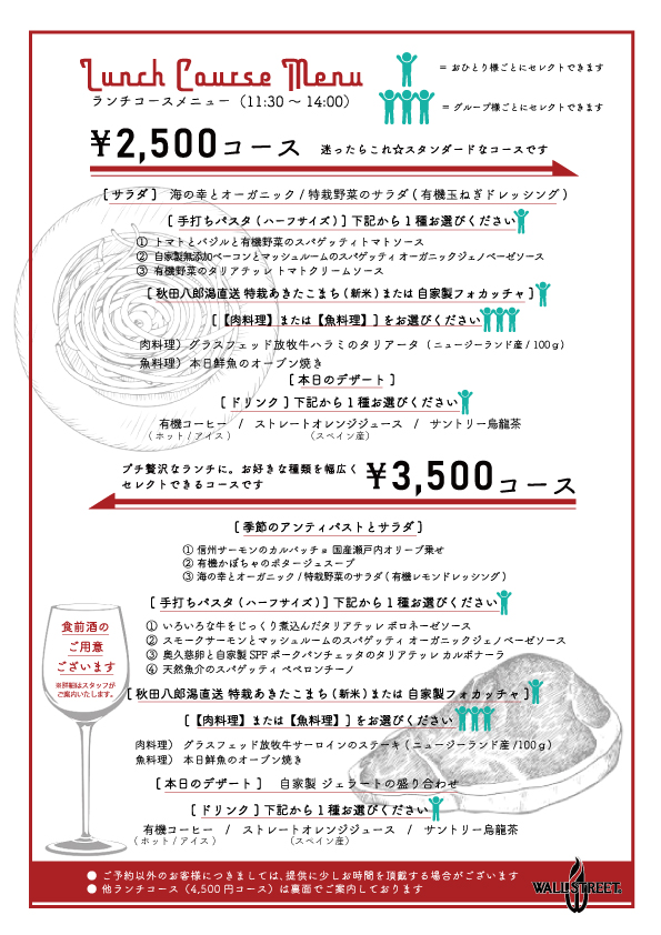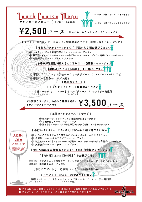 ※選択メニューはご予約時の指定がなければ記載の指定メニューとなりますとなります。ご予約の際ご指定下さい。